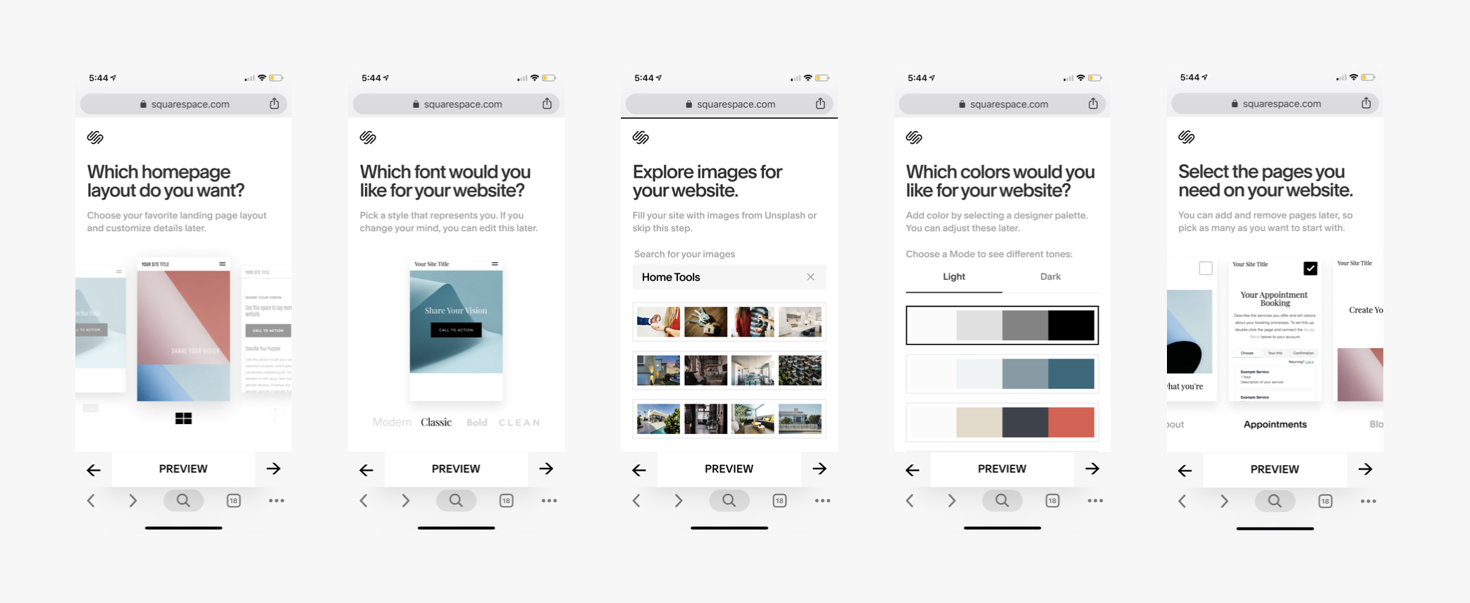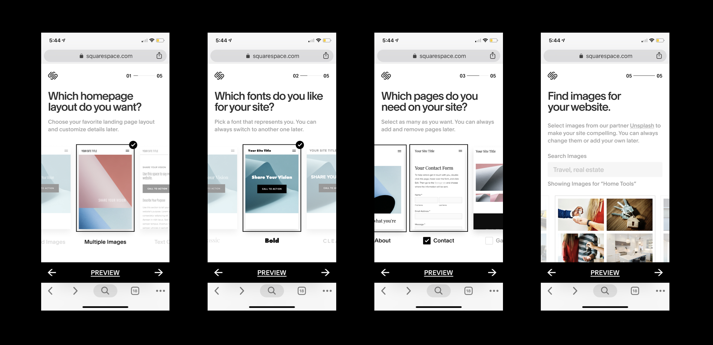 Preview modes are easy to access at every step of the selection process.