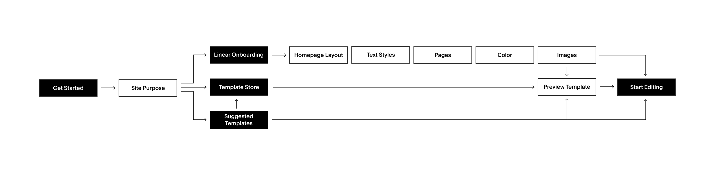 Users can enter the linear onboarding experience through any of the “Get Started” buttons on squarespace.com.