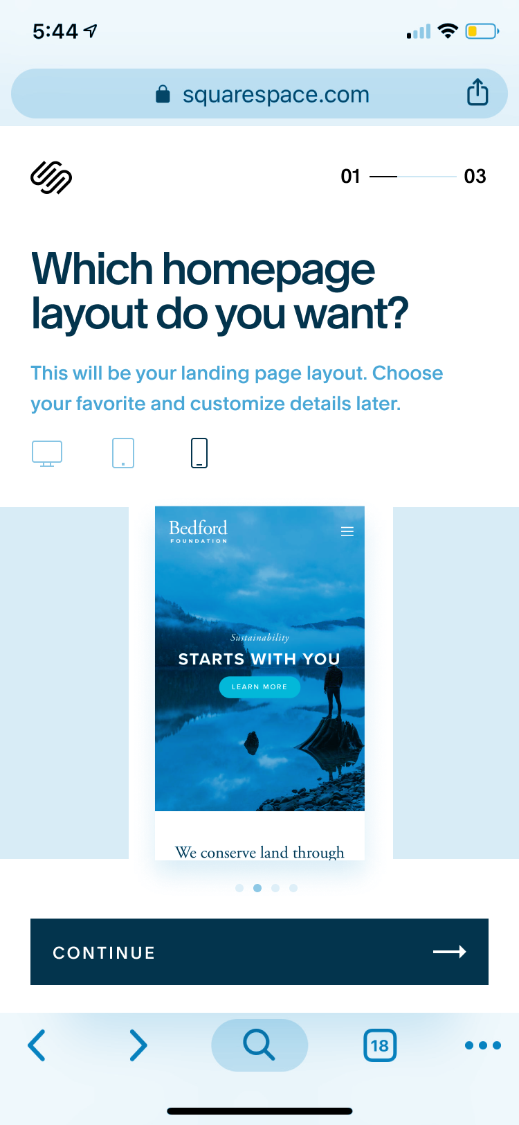 Full site preview based on initial selections, plus a handoff to our native apps.